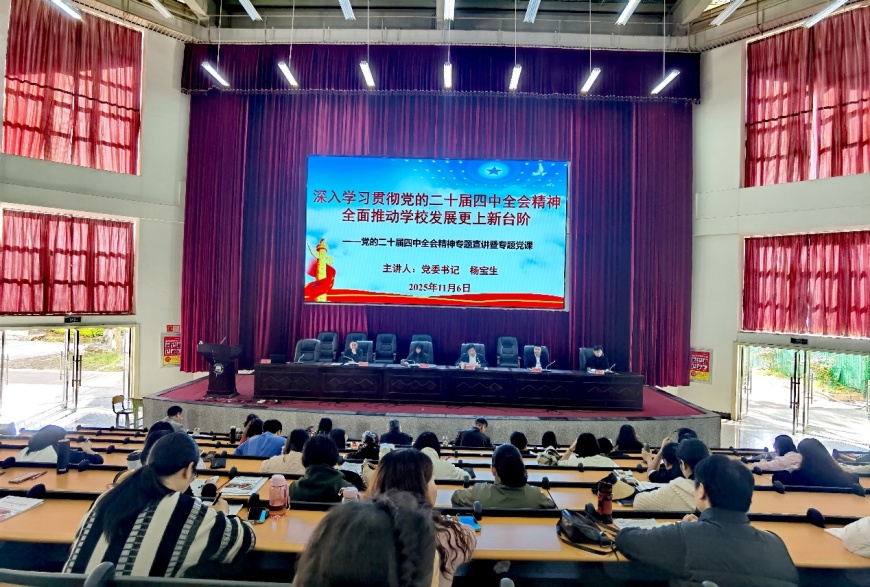 2025年11月6日,楚雄一中党委书记杨宝生向全体教职工宣讲党的二十届四中全会精神暨讲授专题党课。全体教职工参加。