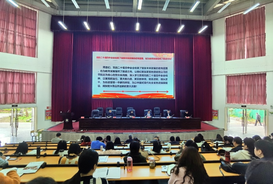 杨书记从“深刻认识党的二十届四中全会的重要意义”“全面把握党的二十届四中全会的主要内容”“准确理解党的二十届四中全会对教育的重大部署”“以党的二十届四中全会为指引,推动学校发展更上新台阶”等四个方面进行宣讲。深刻阐明了党的二十届四中全会的重大意义,阐释了“十五五”时期在基本实现社会主义现代化进程中的重要地位,对“十五五”时期经济社会发展的指导方针、主要目标、战略任务、重大举措、根本保证及全会精神中对教育的重大部署等内容进行了重点解读。