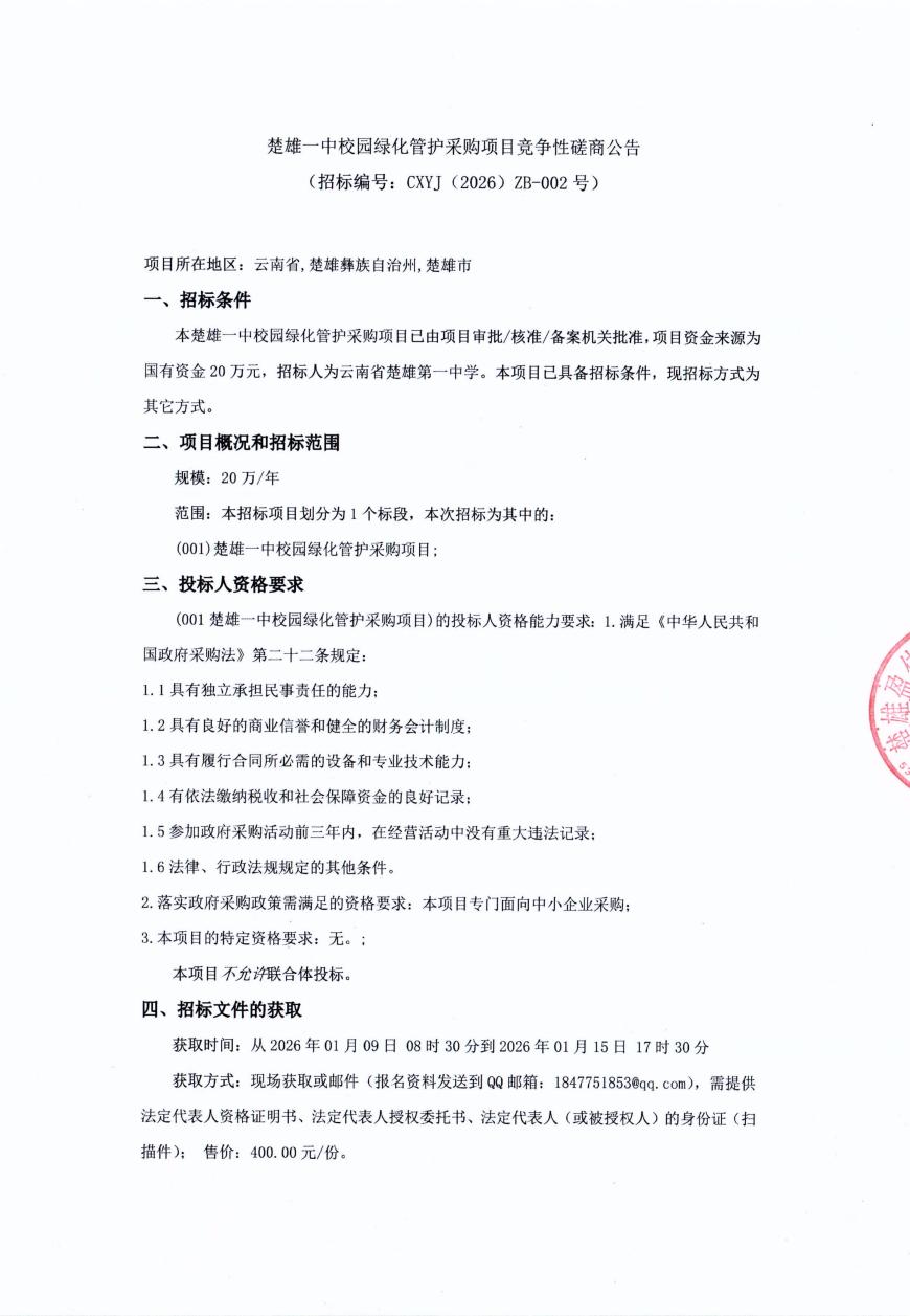 公告链接:https://ctbpsp.com/#/bulletinList?eyWords=%E6%A5%9A%E9%9B%84%E4%B8%80%E4%B8%AD