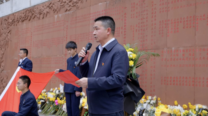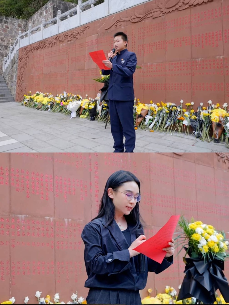 共青团员代表高徐源同学在发言中表示:“作为新时代青年,我们将以革命精神为灯塔,以先烈遗志为旗帜,以青春之我、奋斗之我,守护这盛世中华!”字字铿锵,展现了青年一代的信念与担当。